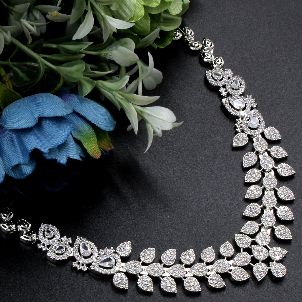 Ethnically designed Orlenna American Diamond Short Necklace Set. The necklace set comes with beautiful pair of complementing earrings to enhance your beauty. The necklace comes with metal chain as necklace back rope/ dori. Metal alloy is used as base material for this Orlenna masterpiece.