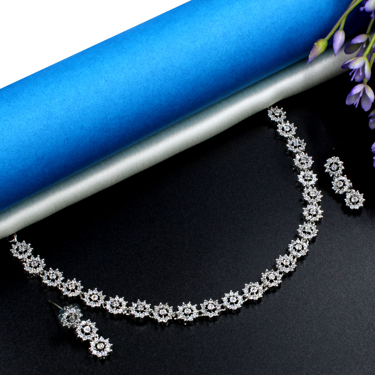 Groom yourself with Orlenna American Diamond Studded Short Necklace Set. Copper alloy is used as base material for this Orlenna masterpiece. The set comes with complementing earrings to enhance your beauty. Orlenna Jewellery is a way of keeping memories alive...
