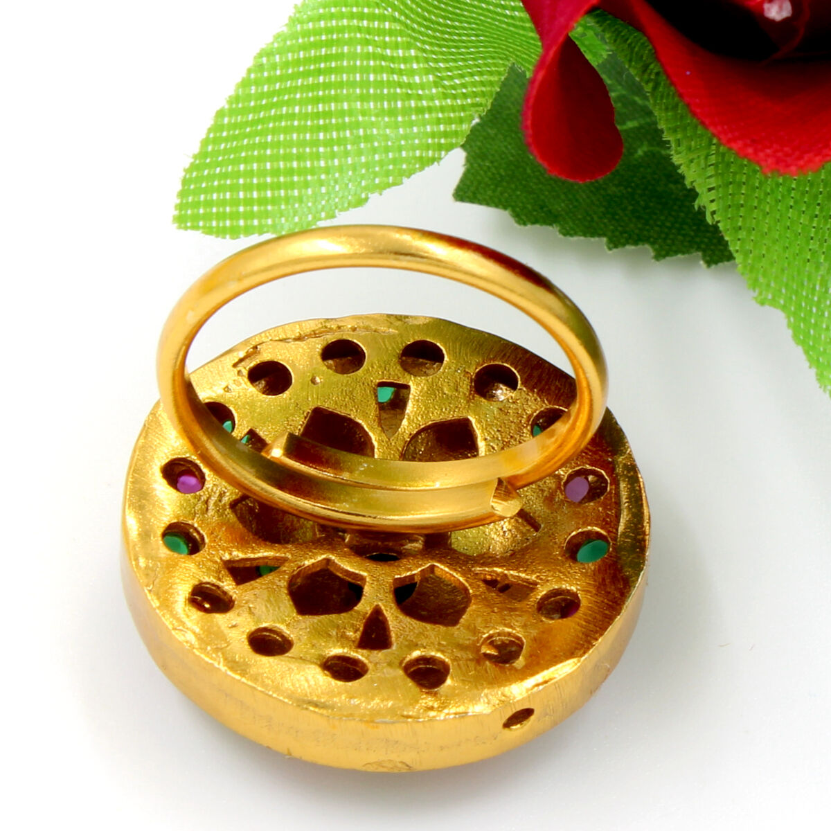 Orlenna offers intricately designed & textured Temple Jewellery - Finger Ring with crystal bead embellishment. . The base material used in this Orlenna masterpiece is Copper alloy.. . This Orlenna masterpiece will put you in the spotlight..