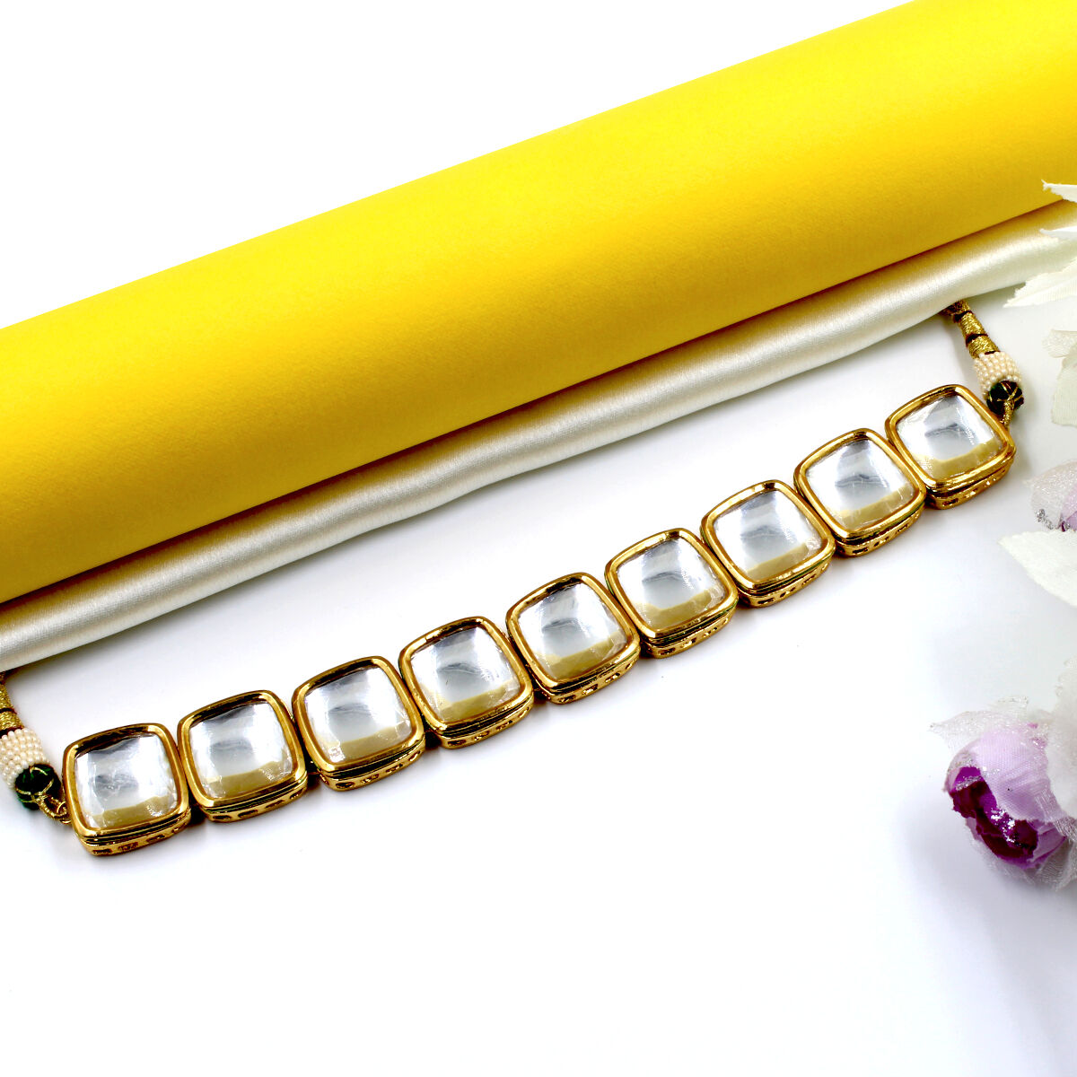 Orlenna presents Kundan Choker . The choker comes with adjustable silk thread back rope/ dori. Mixed metal alloy is used as base material for this Orlenna masterpiece. . Dare to dazzle with this piece of Orlenna Jewellery..