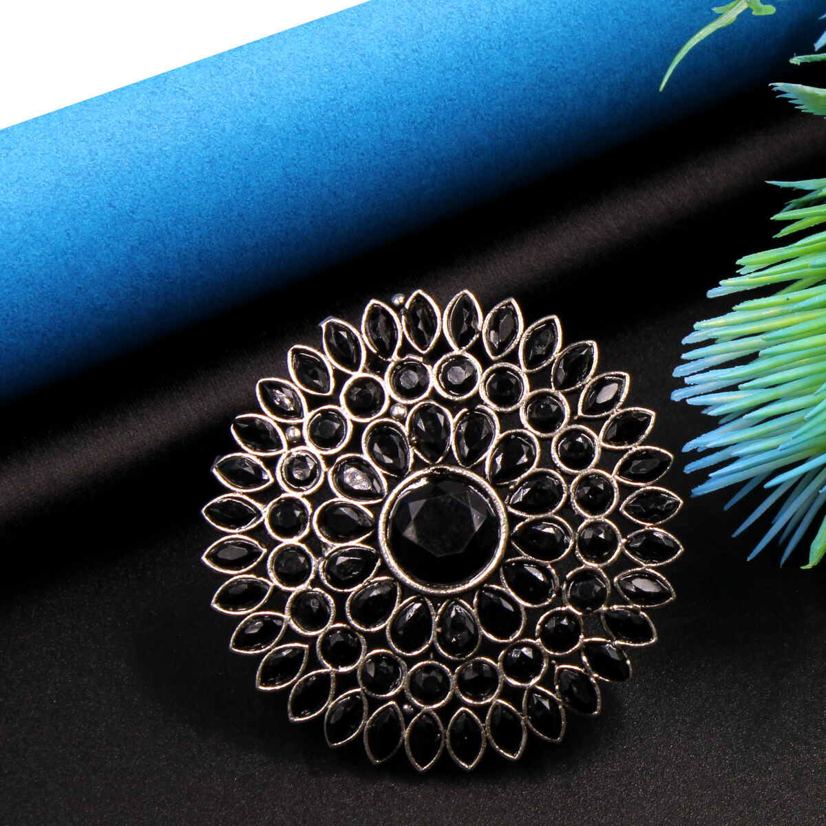 Orlenna's Oxidized Finger Ring with crystal bead embellishment. . The base material used in this Orlenna masterpiece is mixed metal alloy.. . This Orlenna masterpiece will put you in the spotlight..