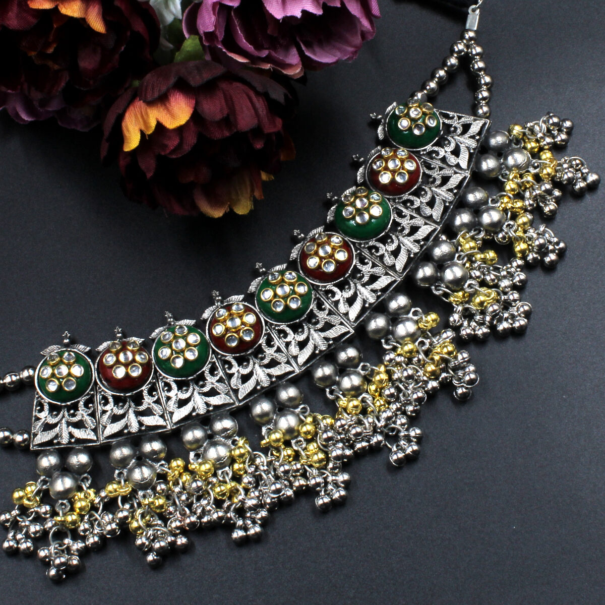 Orlenna Beautifully Crafted Oxidised Kundan Choker