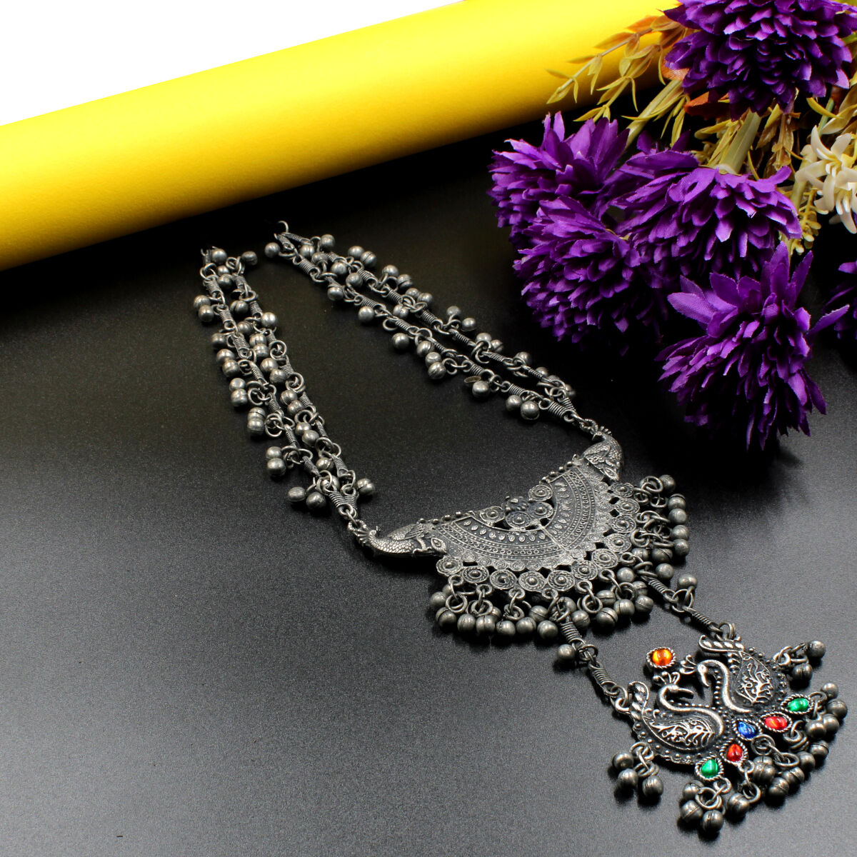 Orlenna offers intricately designed & textured Black Metal Necklace Set. The necklace comes with adjustable black cotton back rope/ necklace dori. This Orlenna masterpiece is made in mixed metal alloy [base material]. Orlenna is a timeless treasure.