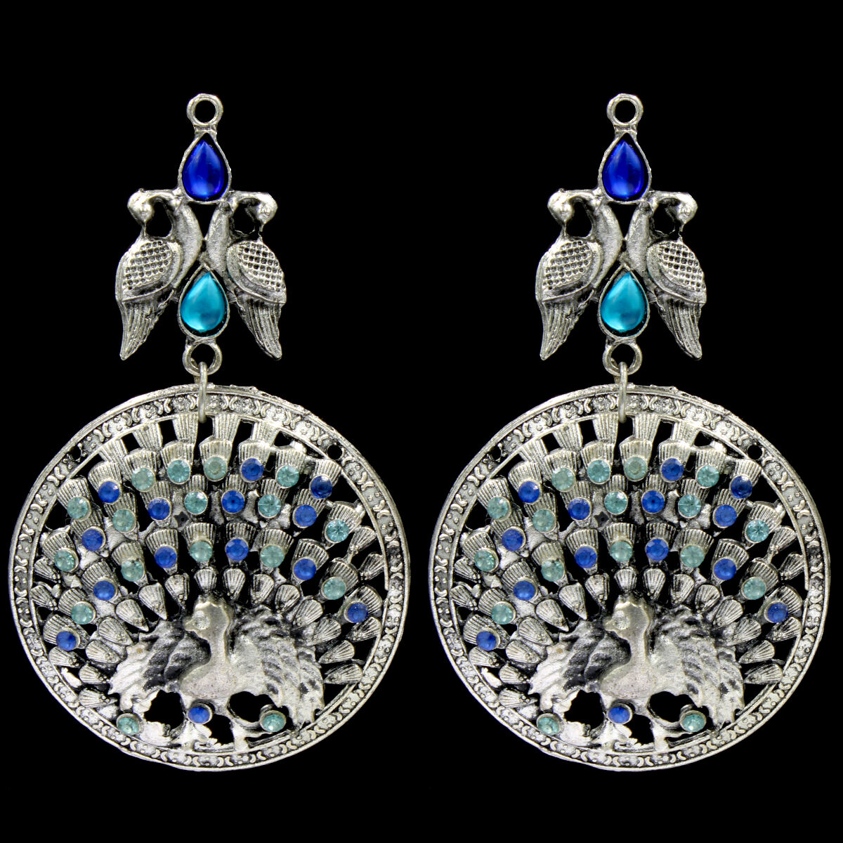 Orlenna offers intricately designed Oxidized Short Necklace Set with crystal bead embellishment. The necklace comes with adjustable blue cotton back rope/ necklace dori. This Orlenna masterpiece is made in mixed metal alloy [base material]. The set comes with complementing earrings.